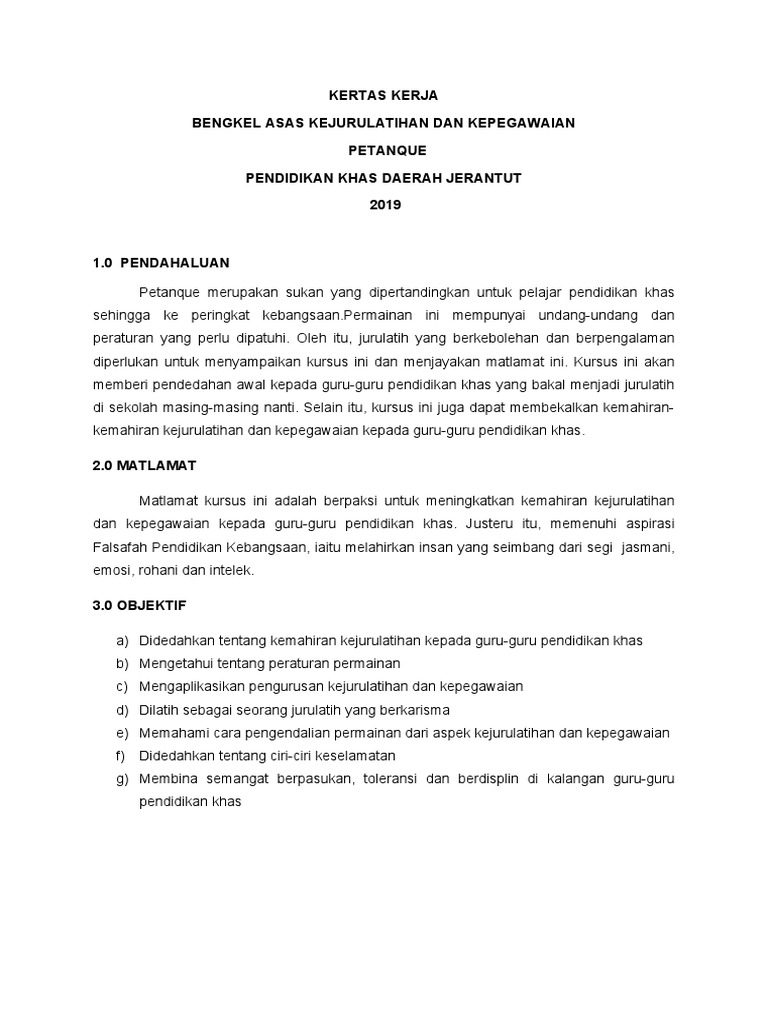 Kertas Kerja Draf Kursus Petanque Pdf